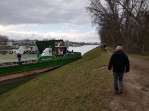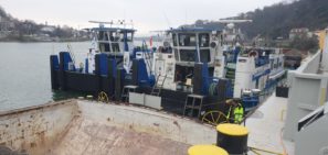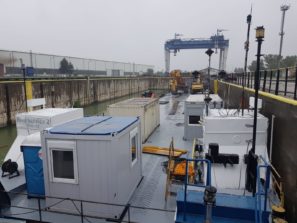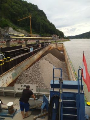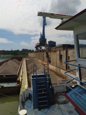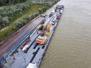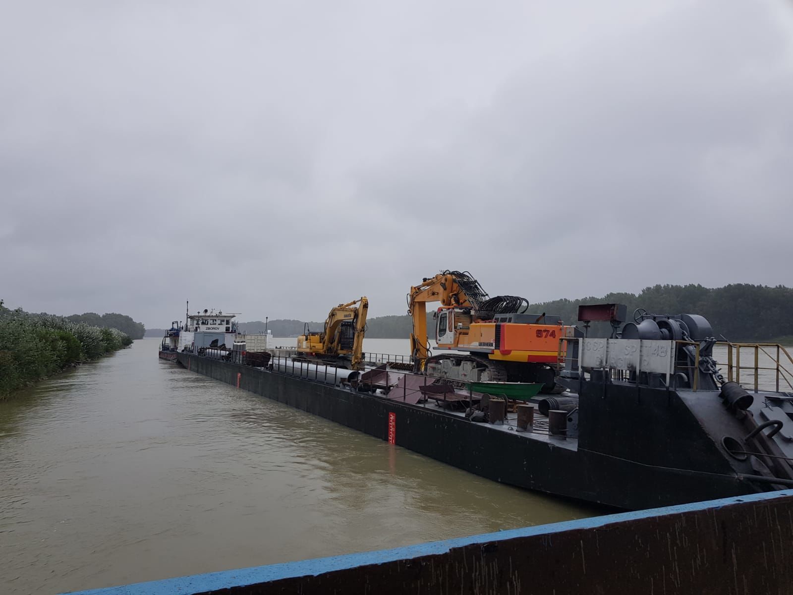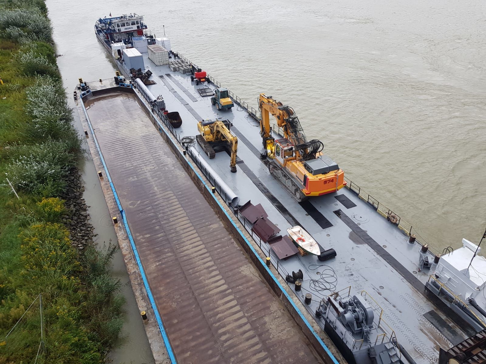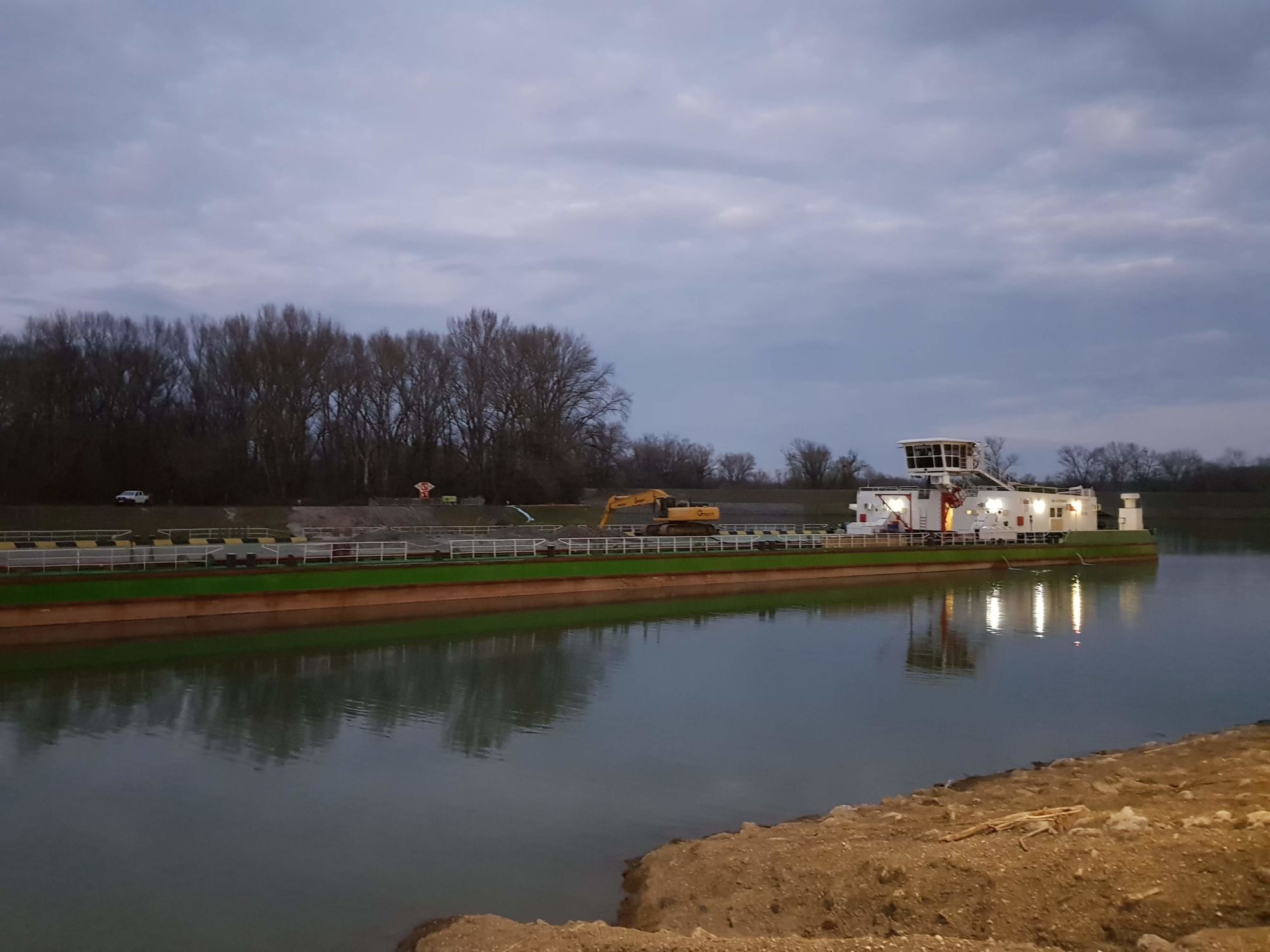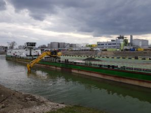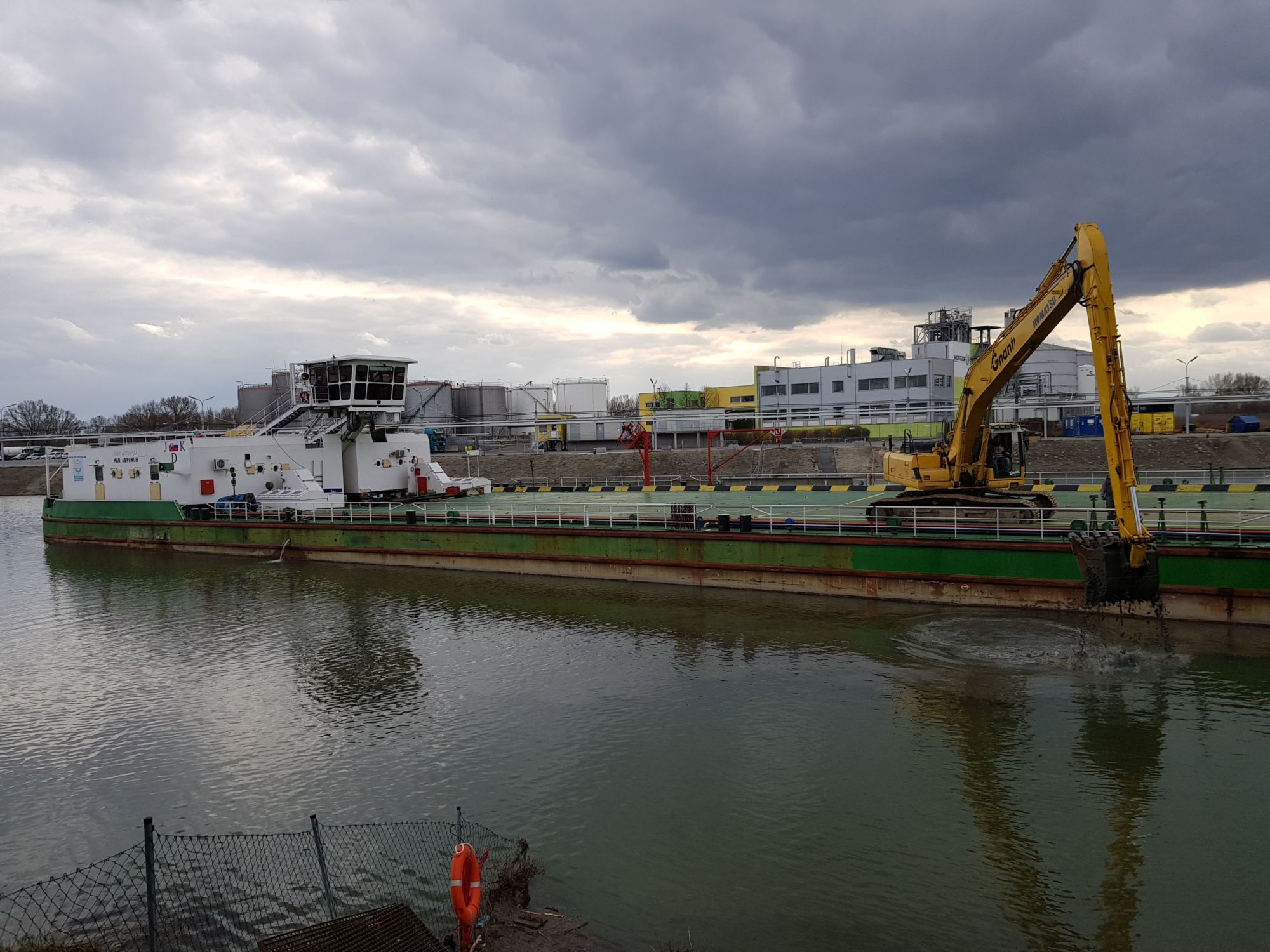 Dredging of sediments in port Lobau with the help of Ro-Ro vessel.