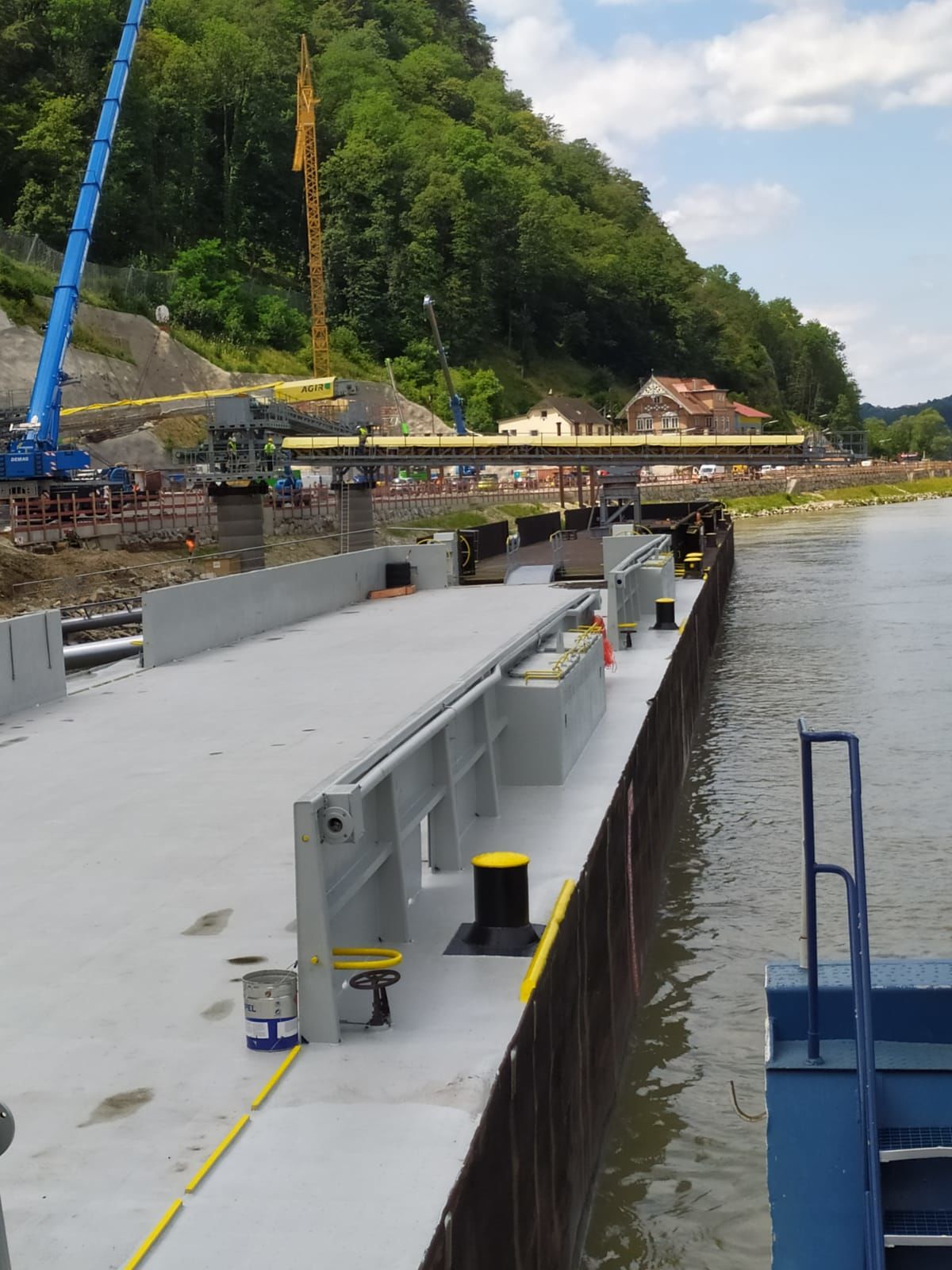 Reconstruction of a bridge in Mathausen, where JDK is providing consultation and Ro-Ro catamaran vessel.