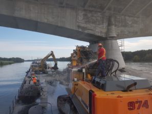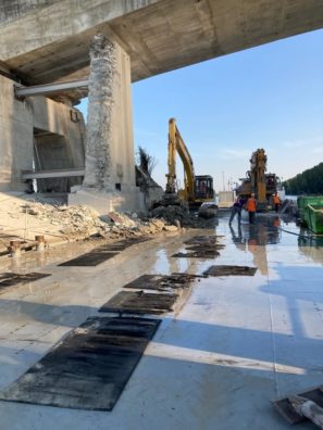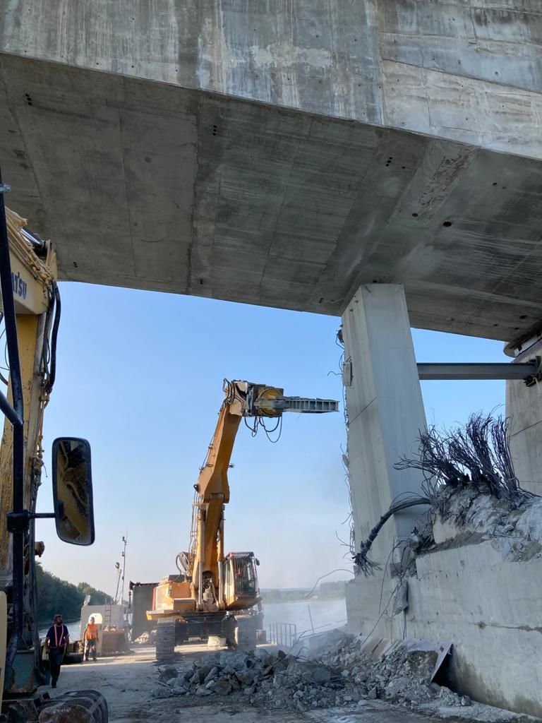Demontage of supporting pillar of highway bridge D4R7 in Bratislava in August 2020, where JDK is providing consultation and vessels.